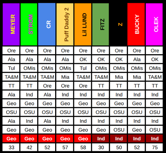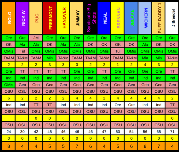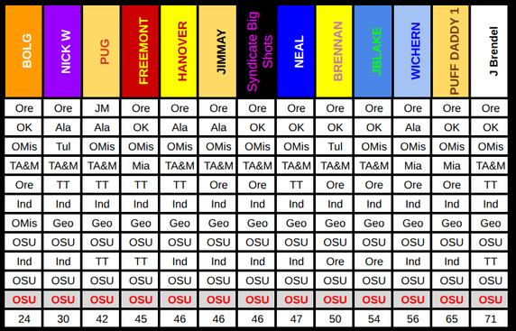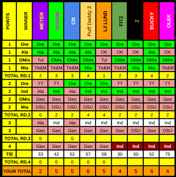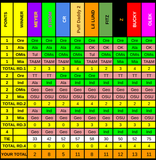 2. Using the drop down menus below, make your selection for the 11 games listed