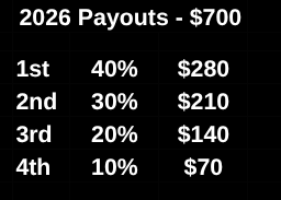 Keep in mind, we are paying 4 people and not necessarily thru 4 places. So if two people tie for 1st and two others tie for 3rd, the well is dry.