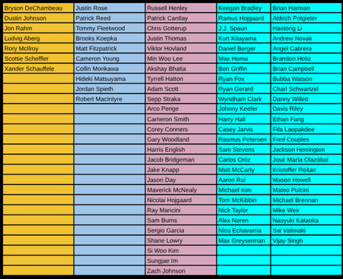 Add up the 4 scores for 4 days of golfing for your picks.