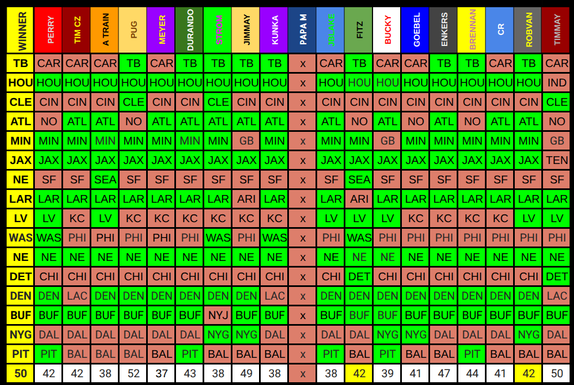 Week 18: Double tie between Fitz and RobVan Each win $10