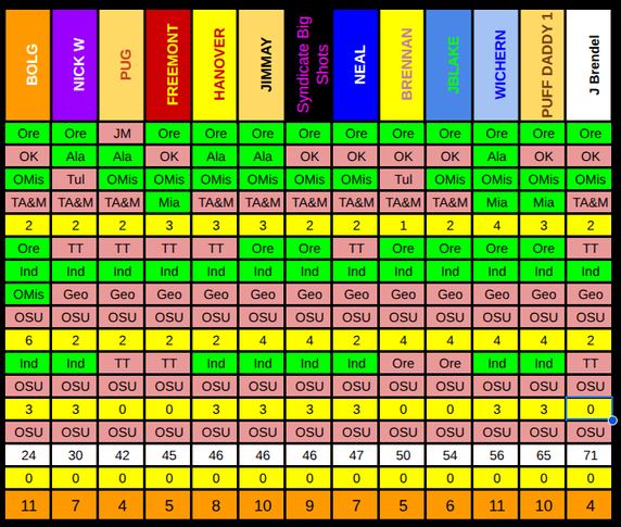 2. Using the drop down menus below, make your selection for the 11 games listed