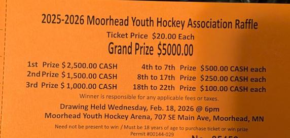 Together, Sawyer and Luella have 40 tickets to sell for the raffle. All prizes are cash and 22 winners will be drawn on February 18!